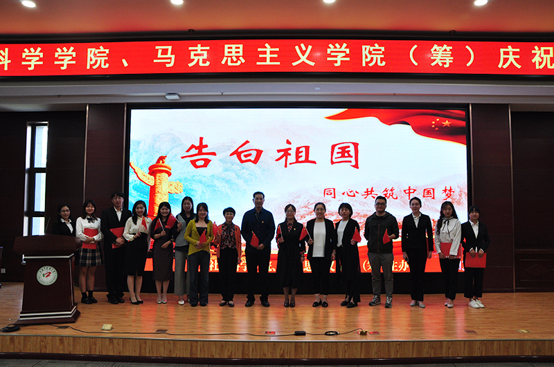 9月29日上午,人文社会科学学院、pg娱乐电子游戏官网入口(筹)在图书馆报告厅举办了以“告白祖国,同心共筑中国梦”为主题的演讲活动。学院院长李俊、学院党总支书记张红丽、体育教学部副主任胡启凯、学院党总支副书记胡松洁及学院全体师生参加活动。