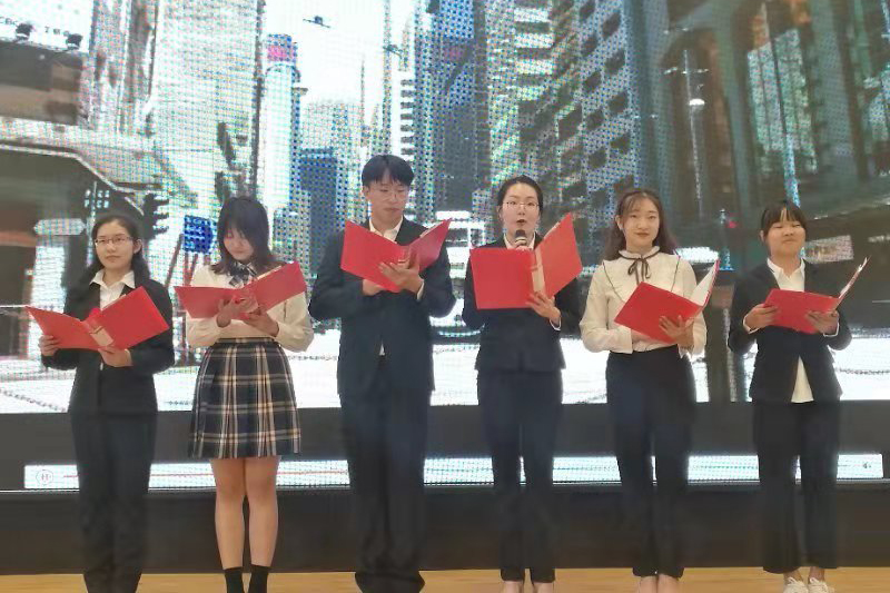 3名思政教师及6名学生组成的演讲团向祖国母亲深情告白,歌颂伟大祖国70年来取得的伟大成就,抒发他们对祖国母亲的热爱之情,表达他们作为华夏儿女对祖国的美好祝愿。老师们将不忘“全心全意为人民服务”的初心、牢记育人使命、落实立德树人根本任务作为他们对伟大祖国的告白,培养担当民族复兴大任的时代新人,为学生心灵埋下真善美的种子,引导学生扣好人生第一粒扣子。学生们将坚定的理想信念和爱国奋斗之志作为他们对伟大祖国的告白,听新时代号角嘹亮,誓做中华脊梁。