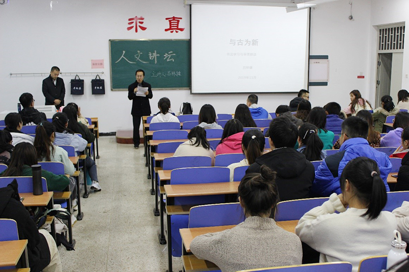 11月14日,人文社会科学学院邀请中国书法家协会会员、中华文化促进会会员、山西省书法家协会副主席、山西省青年书协副主席、山西书法院研究员吕林健做了题为“与古为新一一谈书法的学习审美”的文化讲座。院长李俊出席,副院长张秀峰主持,学院全体学生聆听了讲座。